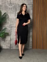 Kadın Yaka Ribanalı Çift Yırtmaçlı Elbise
