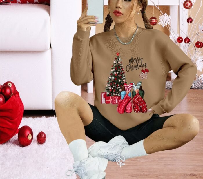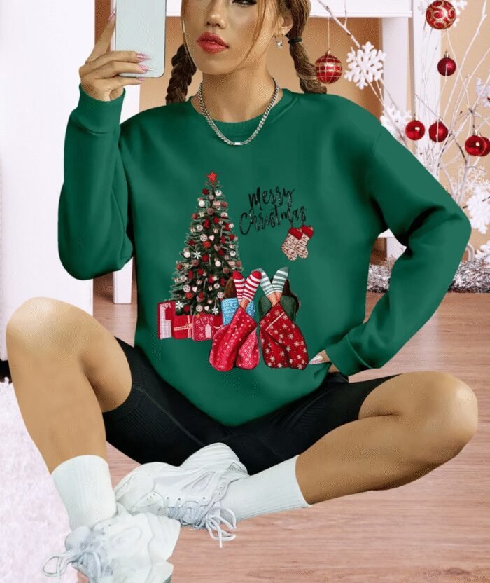 Kadın Yılbaşı Özel Uzun Kollu Bisiklet Yaka Viskon Iki Iplik Bluz