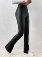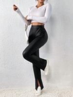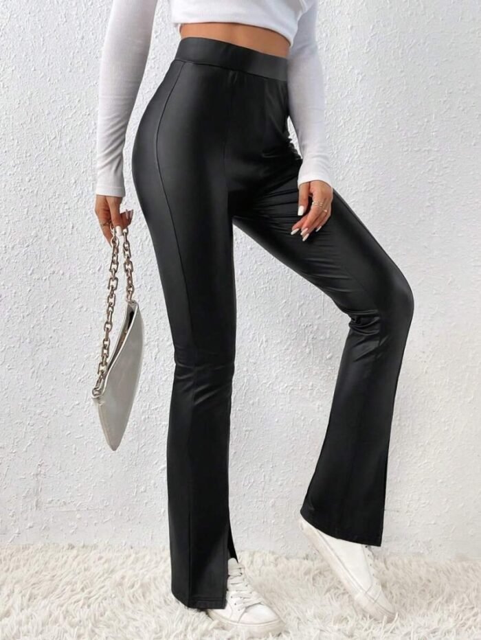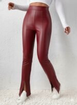 Kadın Yüksek Bel önden Yırtmaçlı Deri Tayt
