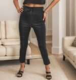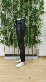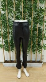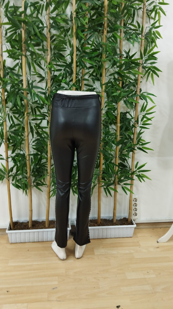 Kadın Yüksek Bel Yanlardan Incili Yırtmaçlı Uzun Deri Tayt