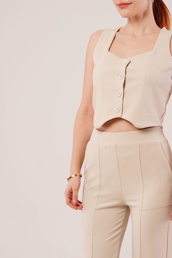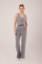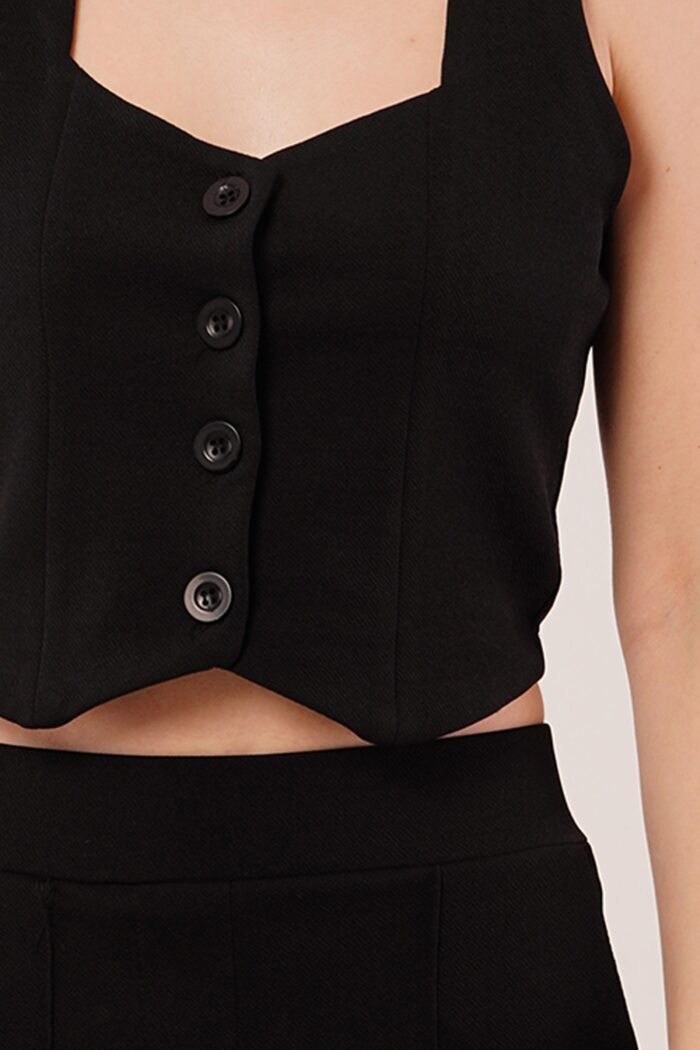Kalın Askılı Düğmeli Yelek Ve Pantolon Siyah Takım
