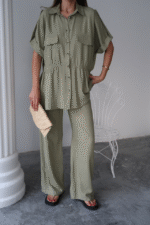 KETEN BELDEN BÜZGÜ DETAYLI GÖMLEK – PANTOLON TAKIM