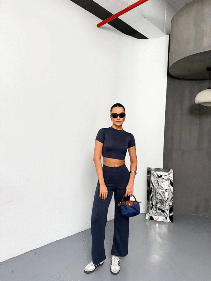 Osy Modal Yumuşak Dokulu Kumaş Kısa Kollu Crop Alt Ispanyol Paça Pantalon Ikili Takım