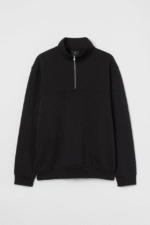 Oversize Yarım Farmuarlı Yakalı Basic SweatShirt – Siyah