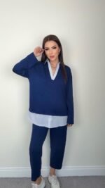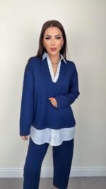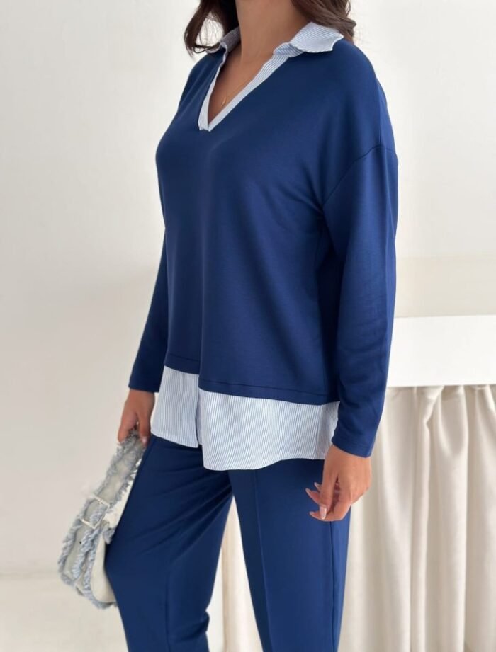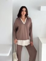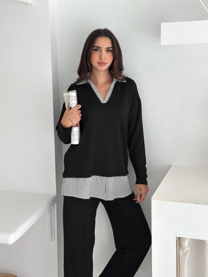 Polo Yaka Gömlekli Salaş Balon Pantolunlu ıkılı Takım