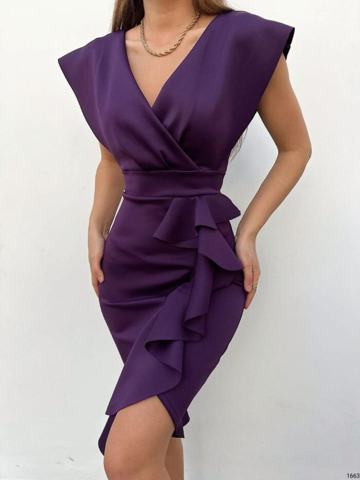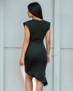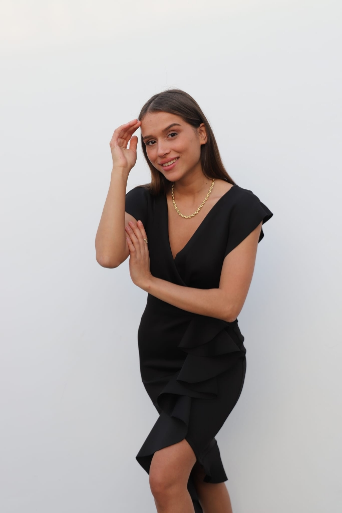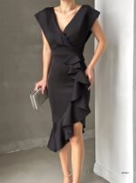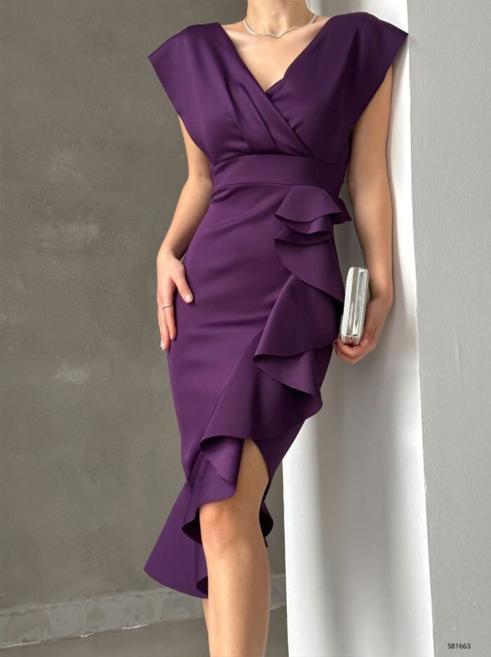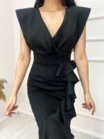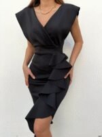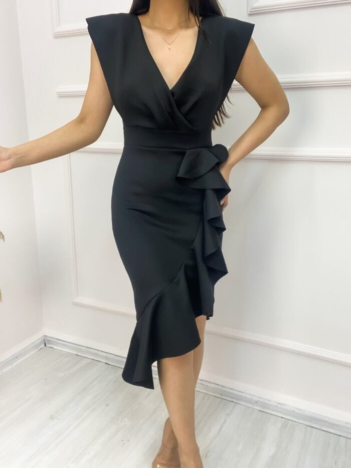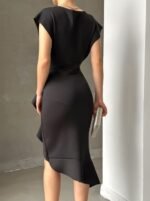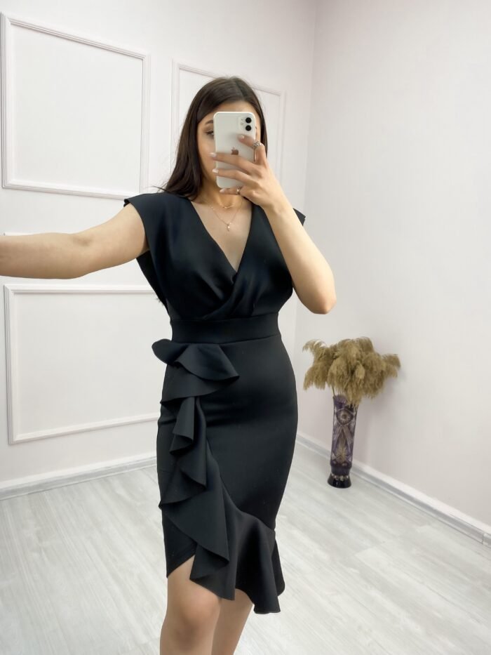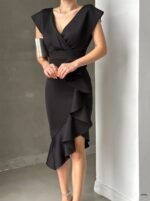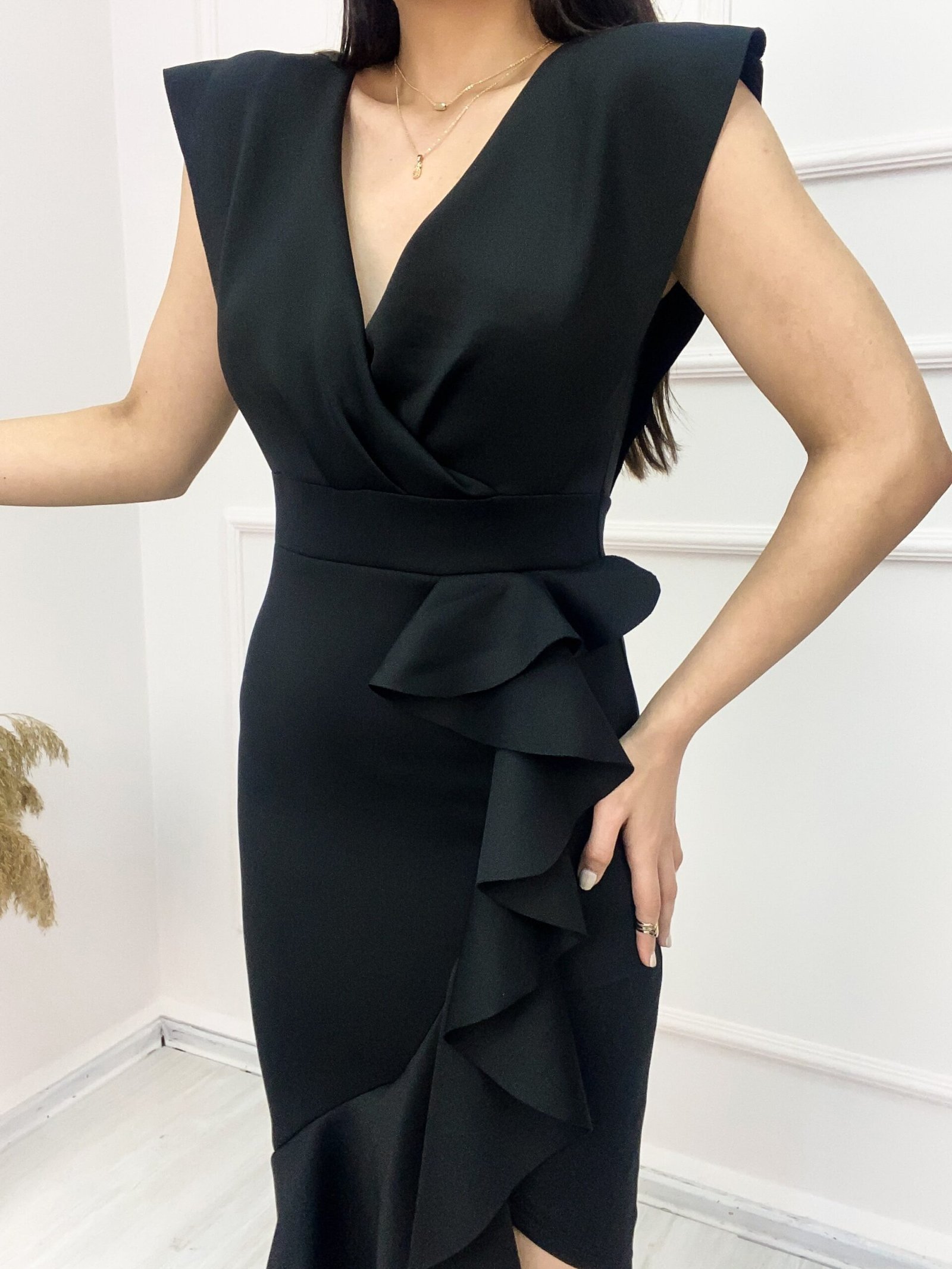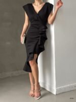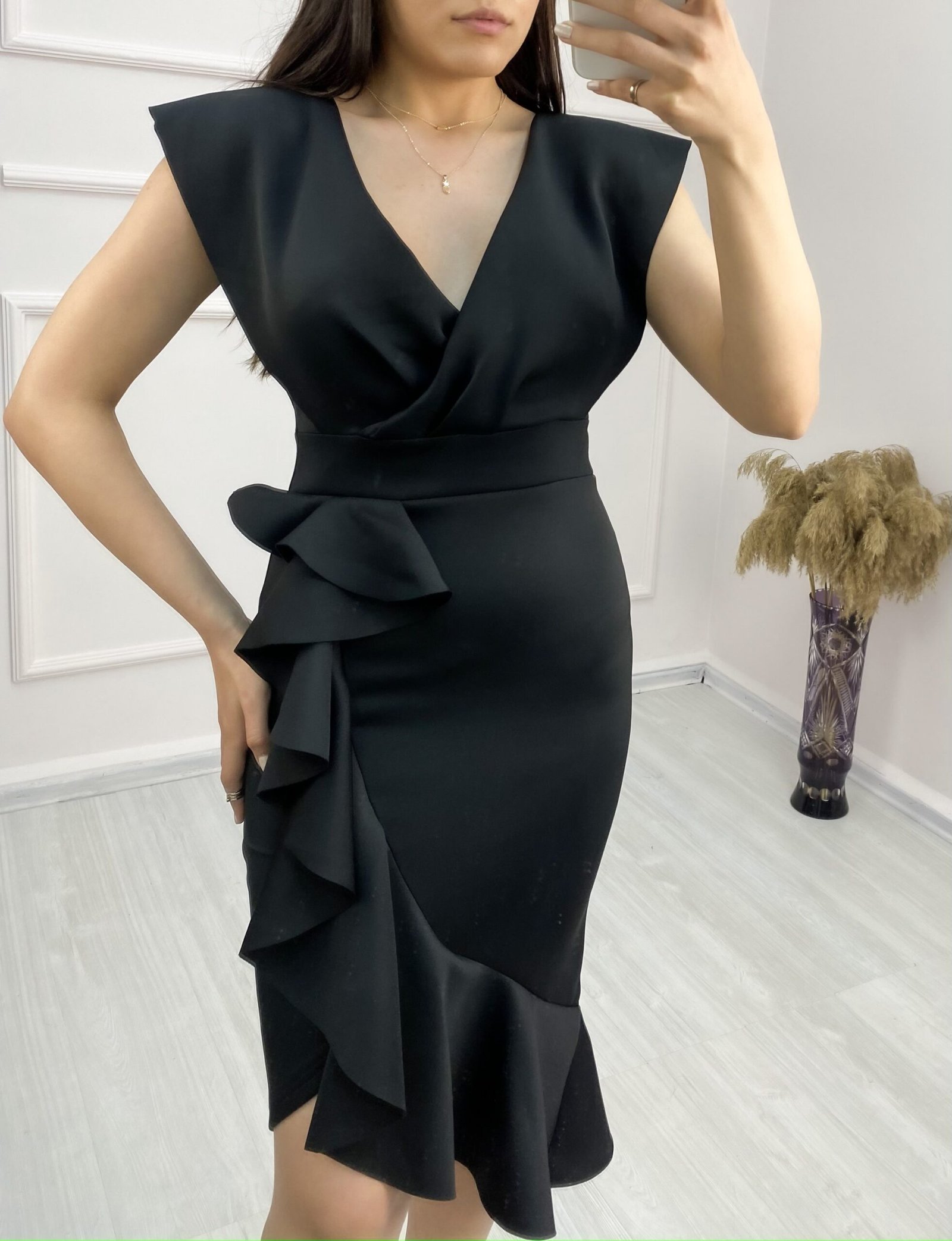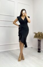 Scuba Kumaş Önü Fırfırlı Midi Boy Elbise