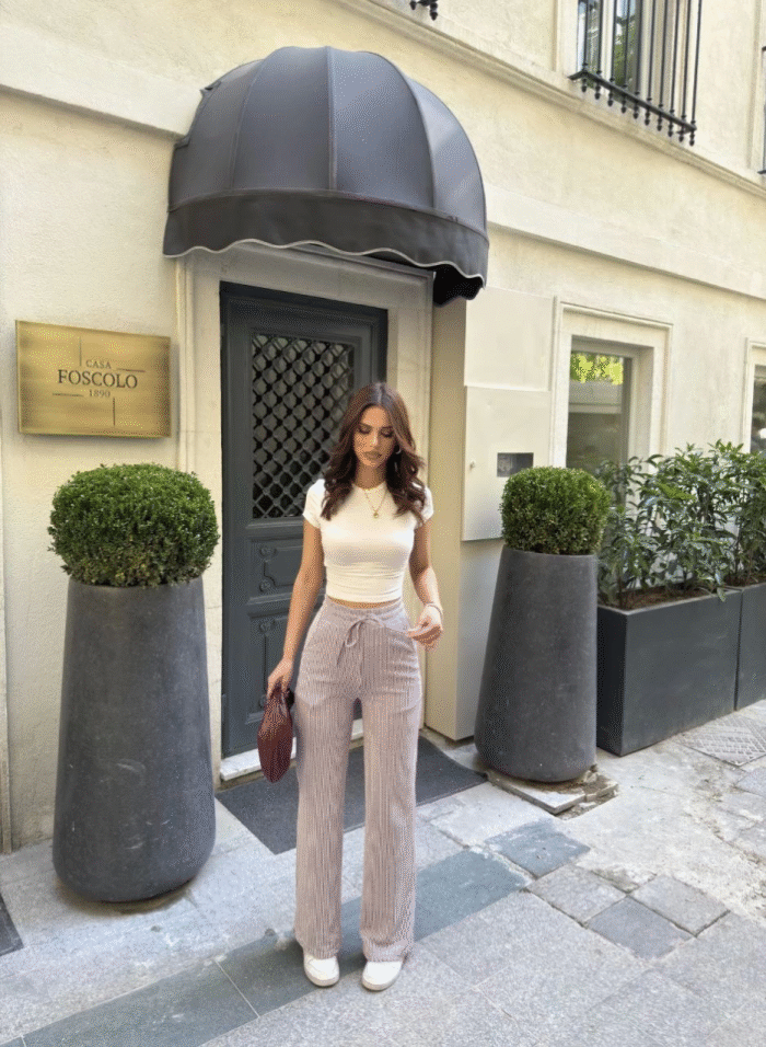 Su Yolu Çizgili Kolay Kombinle Ne Bilir Cepli Pantolon