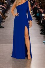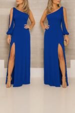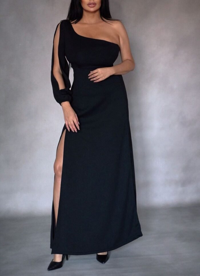 Tek Omuz Açık Derin Yırtmaçlı Krep Tam Boy Elbise