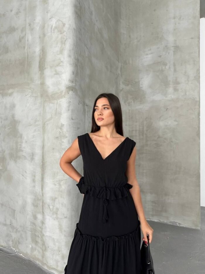Sırt Dekolteli Kolsuz Uzun Elbise