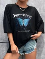 Unisex Baskılı Oversize T-Shirt – Siyah