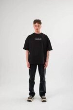 Unisex Bisiklet Yaka Baskılı Oversize T-Shirt – Siyah