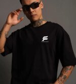 Unisex Bisiklet Yaka Baskılı Oversize T-Shirt – Siyah