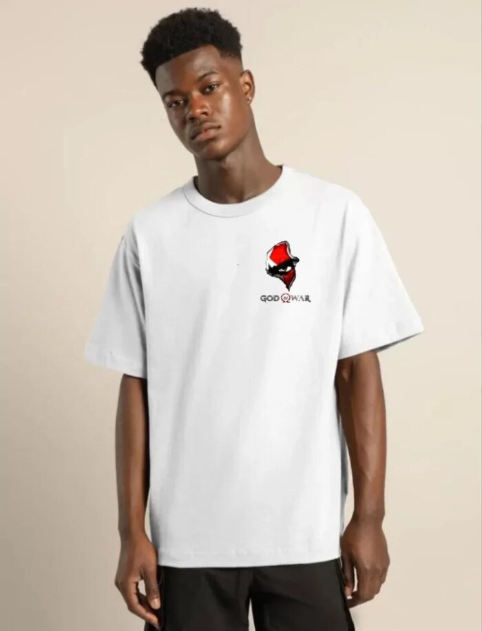 Unisex Bisiklet Yaka Baskılı Oversize T-Shirt – Beyaz