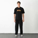 Unisex Bisiklet Yaka Baskılı Oversize T-Shirt – Siyah