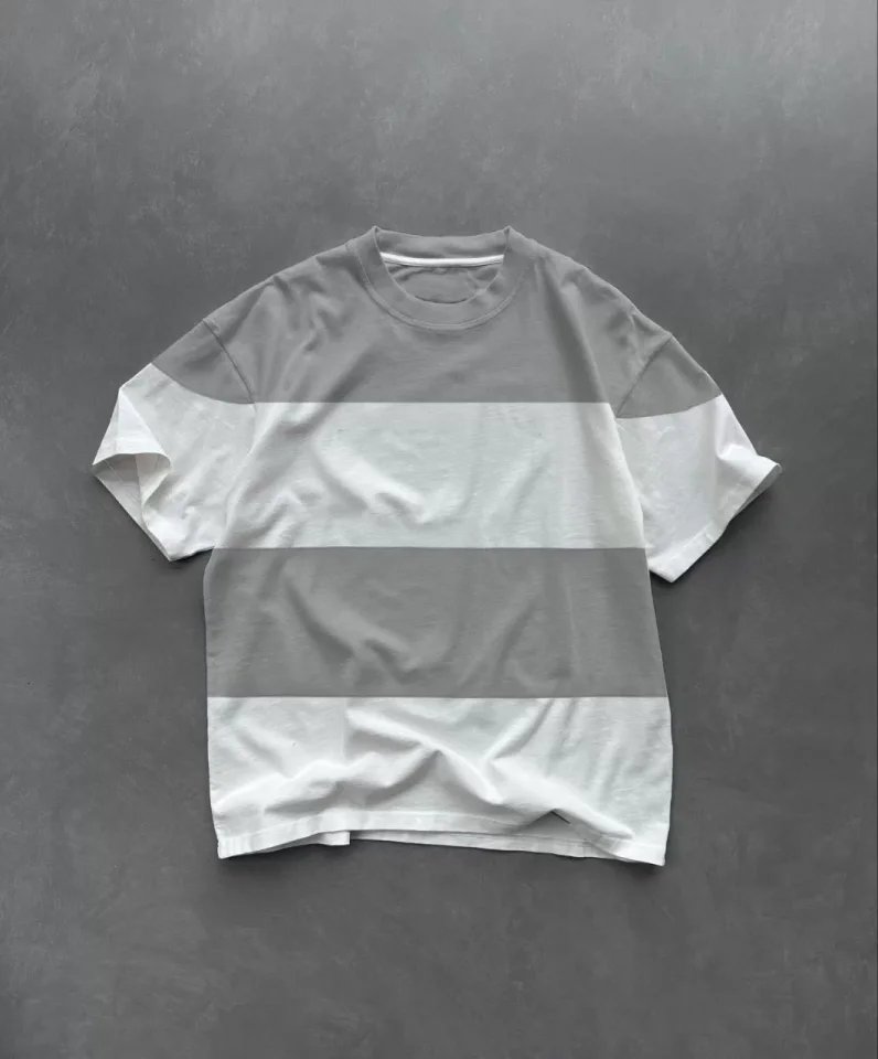 Unisex Bisiklet Yaka Parçalı T-Shirt – Gri