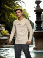 Unisex Bisiklet Yaka Uzun Kollu T-Shirt – Beyaz