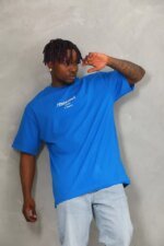Unisex Oversize Baskılı Bisiklet Yaka T-Shirt – Mavi