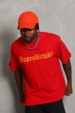 Unisex Oversize Baskılı Bisiklet Yaka T-Shirt – Kırmızı