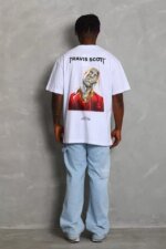Unisex Oversize Baskılı Bisiklet Yaka T-Shirt – Beyaz