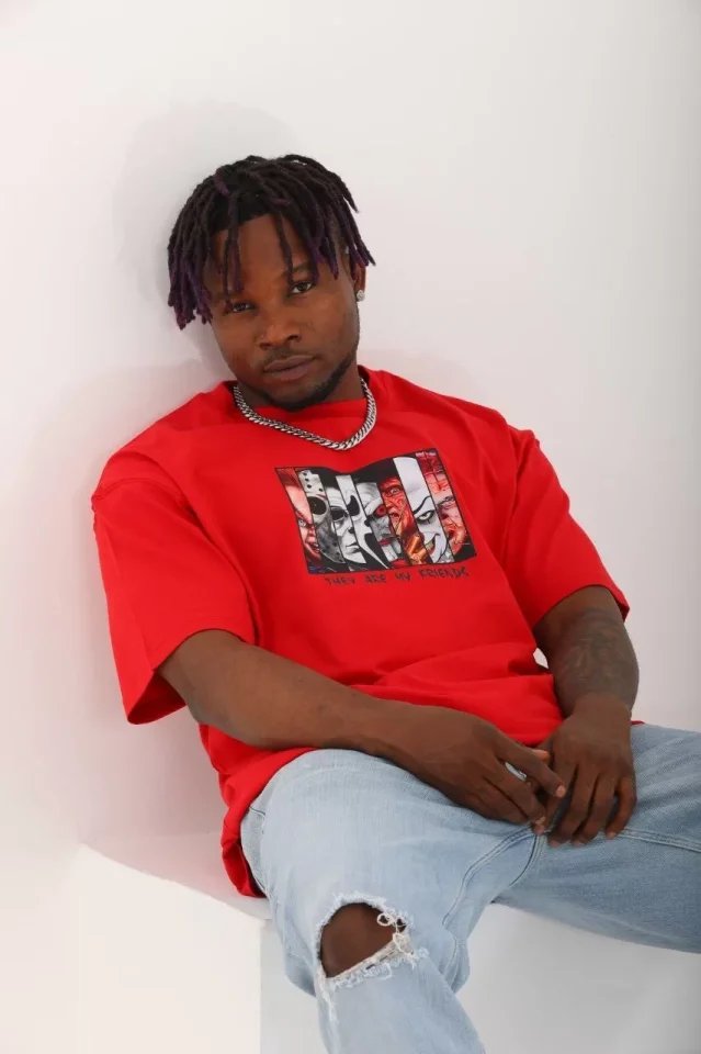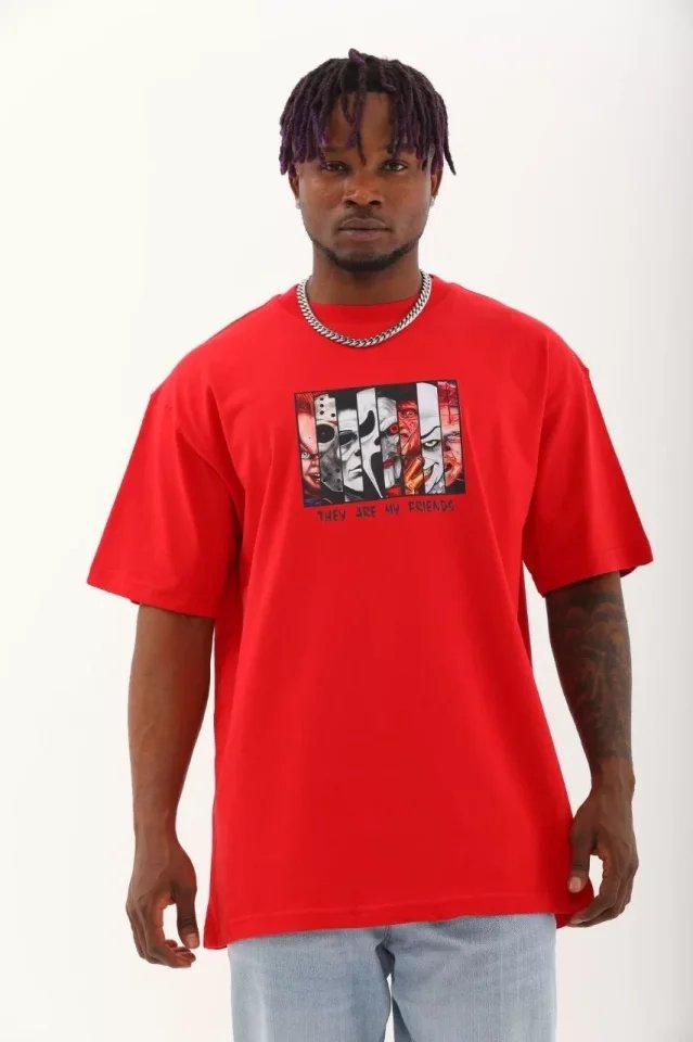 Unisex Oversize Baskılı Bisiklet Yaka T-Shirt – Kırmızı