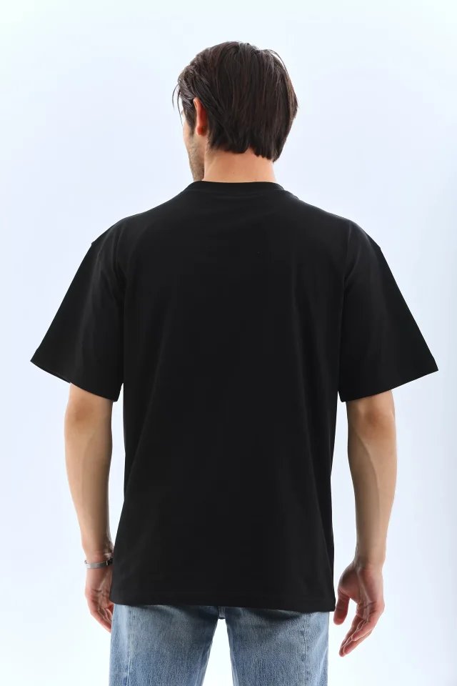 Unisex Oversize Düz Bisiklet Yaka T-Shirt – Siyah