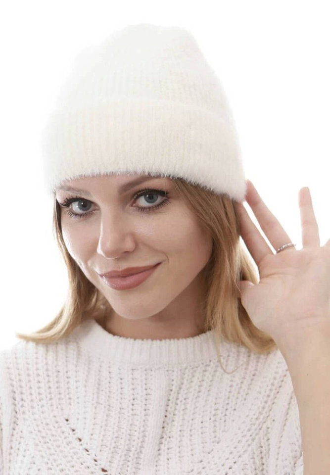 Unisex Tam Kalıp İnce Sakallı Triko Bere – Beyaz
