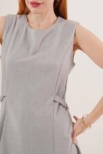 Yanları Zincir Detaylı Sıfır Kol Siyah Mini Elbise