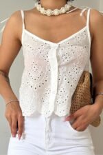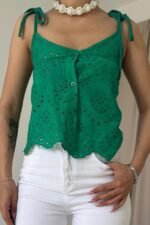 Yeşil Bağcıklı Brode Bluz