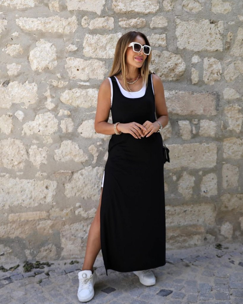 Kadın Askılı Yuvarlak Yaka Cepli Salaş Uzun Viskon Tulum
