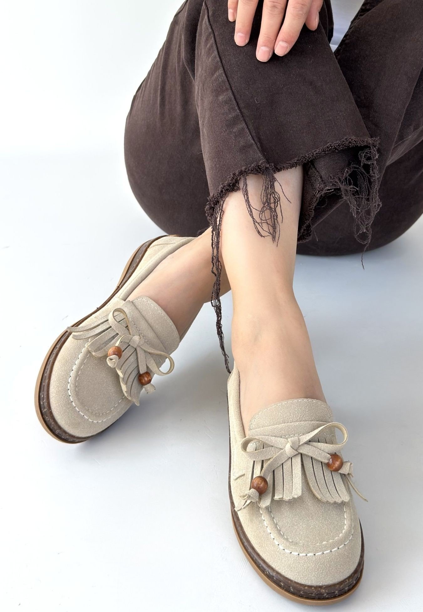 Boriy Bej Deri Tozu Süet Babet Ayakkabı