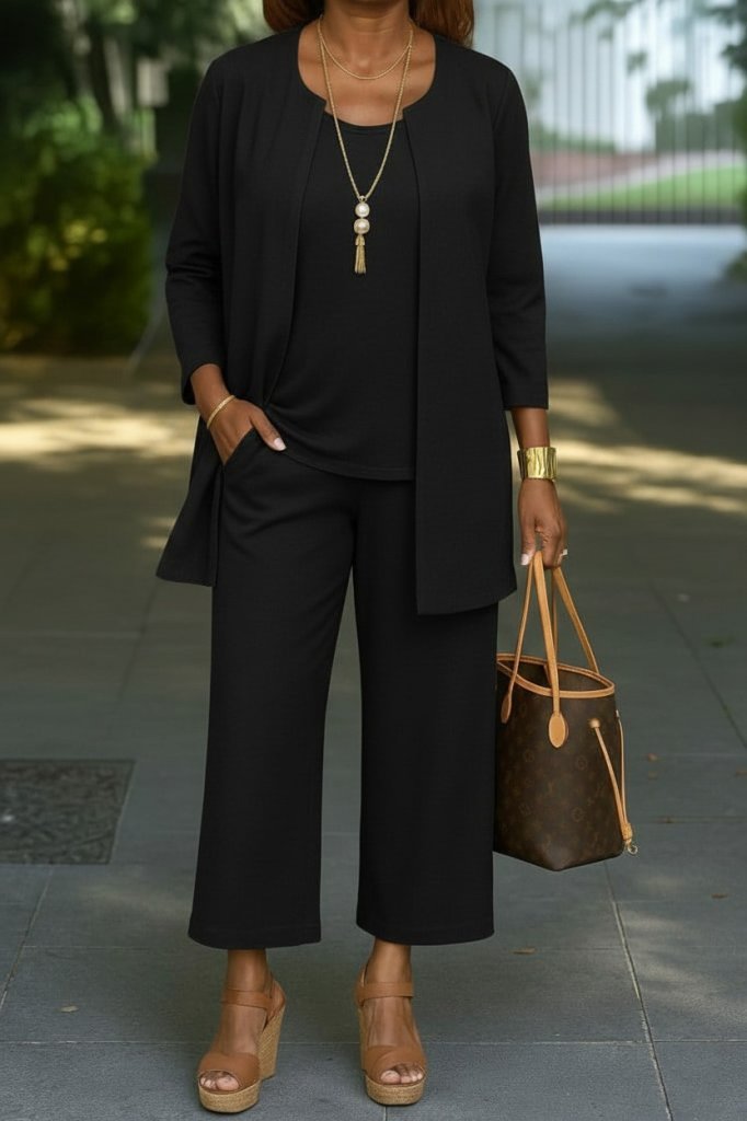 Kadın Uzun Kollu önü Açık Desenli Iki Iplik Ceket Ve Pantolon Ikili Takım