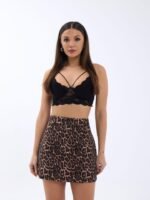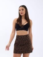 Kadın Sıfır Kollu V Yakalı Yaprak Desenli Süprem Bluz