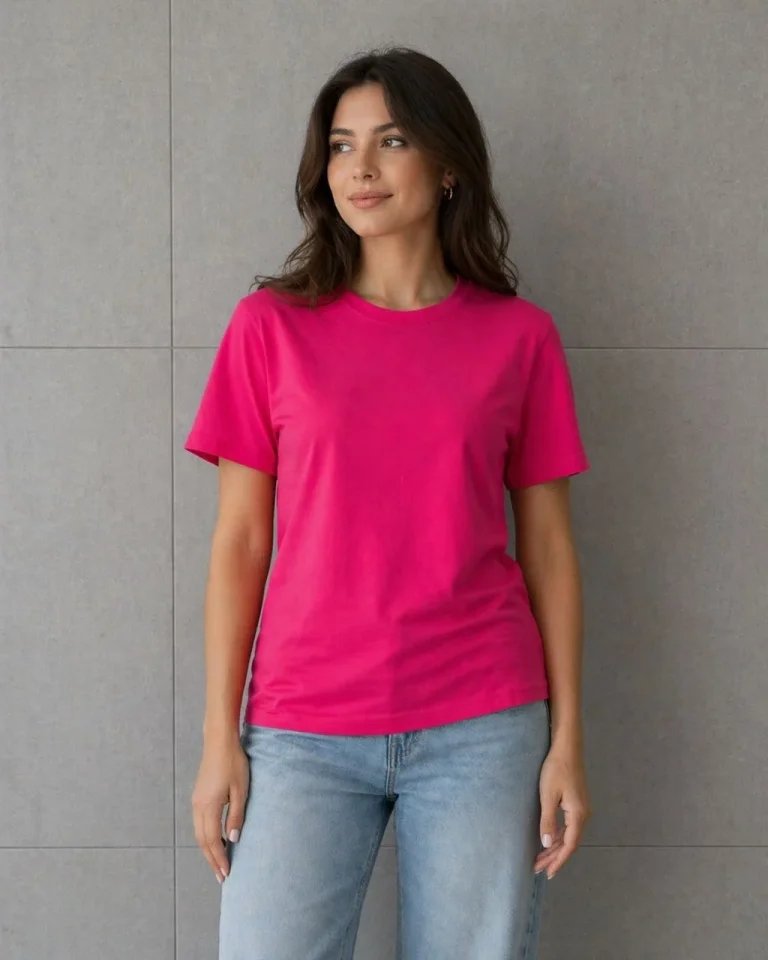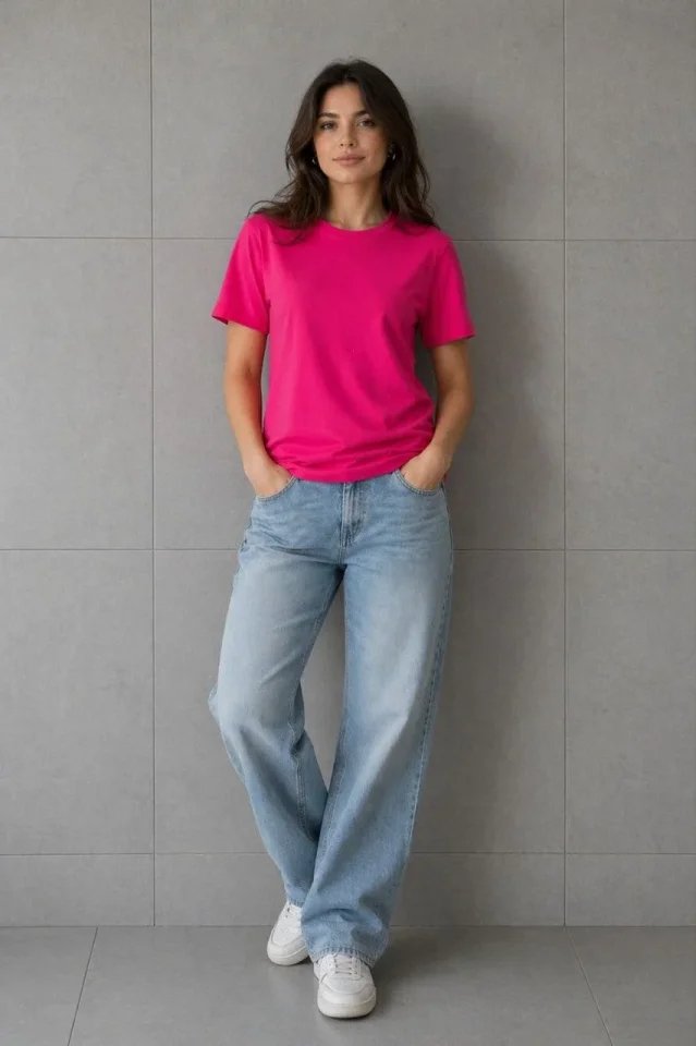 Basic Pamuklu Tişört Bisiklet Yaka Düz Renk Relaxed Fit T-Shirt – Fuşya