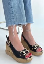 Caver Siyah Cilt Dolgu Topuk Sandalet