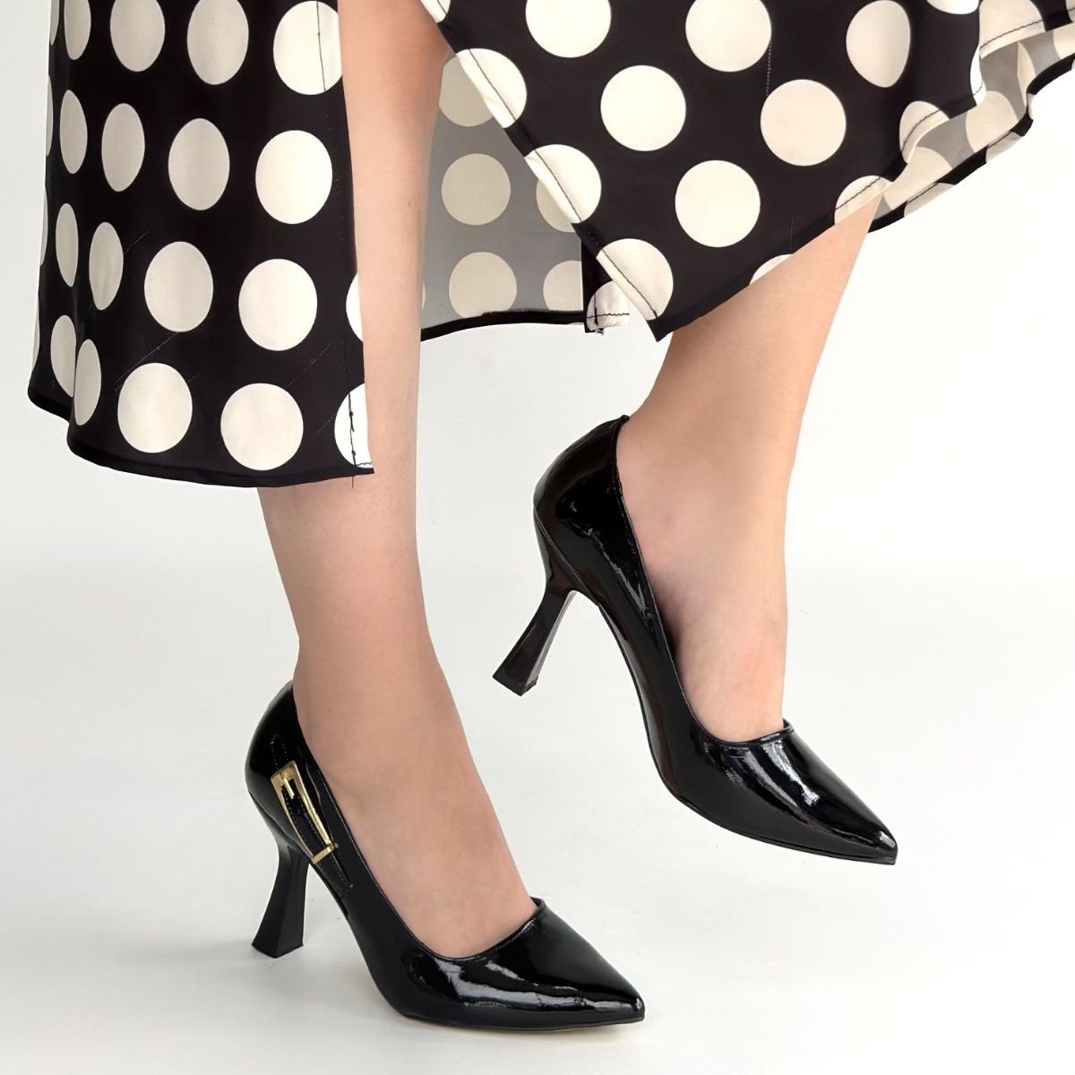 Cerin Siyah Rugan Topuklu Ayakkabı