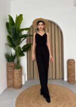Kadın Dalgıç Kumaş V Yaka Yırtmaç Detaylı Maxi Boy Elbise