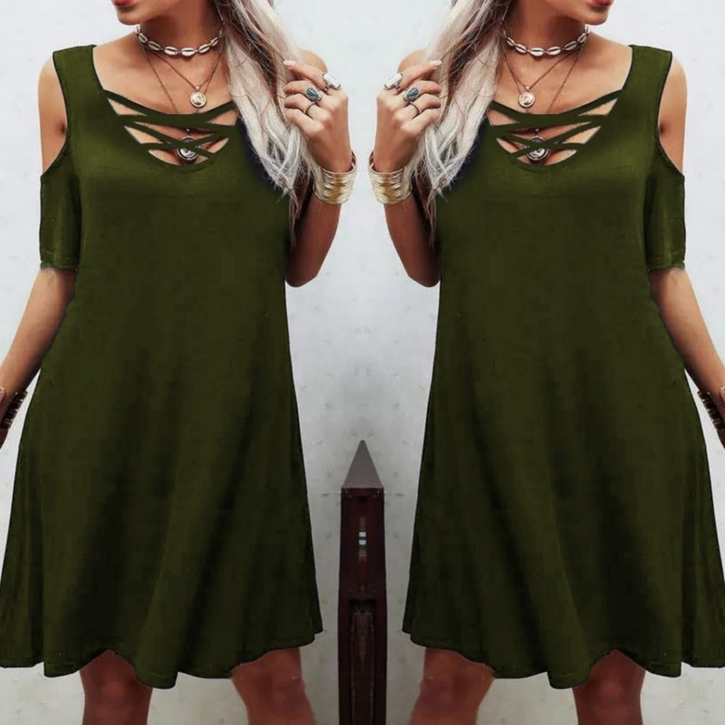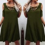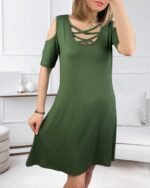 Dekolteli Bağcık Detay Viskon Kumaş Elbise