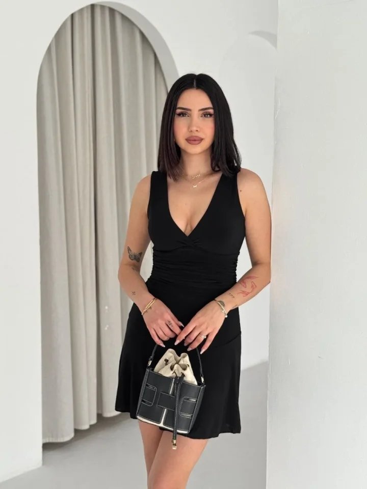 “Derin V Yaka Sırt Dekolteli Mini Elbise Drapeli Şık Kolsuz” için yorum yapan ilk kişi siz olun Yanıtı iptal et