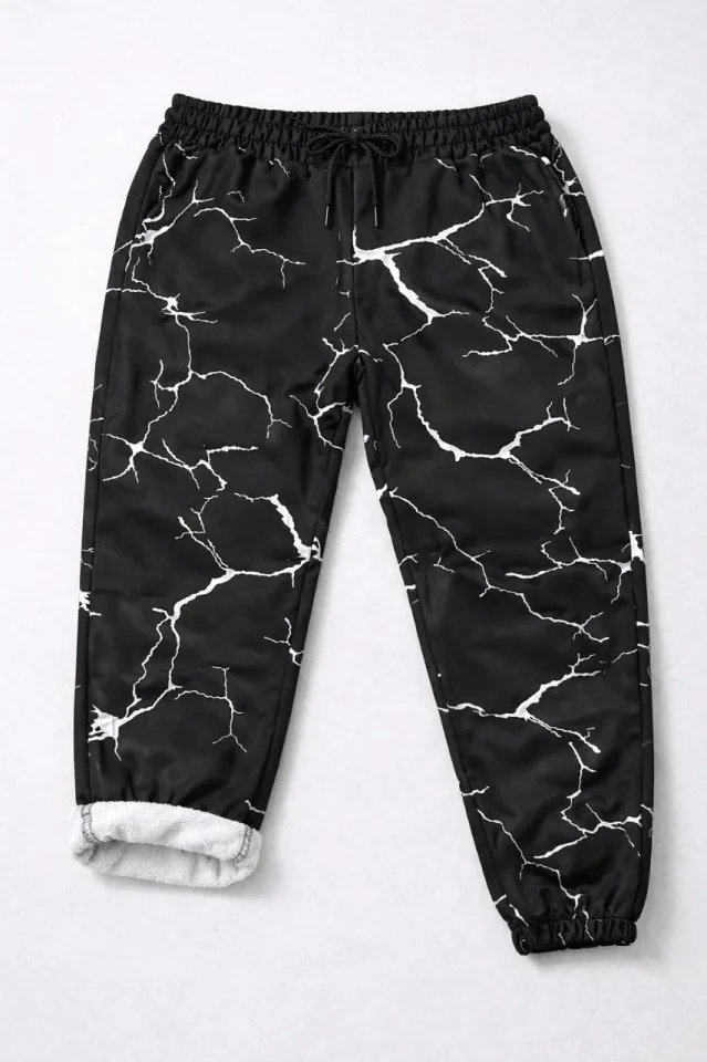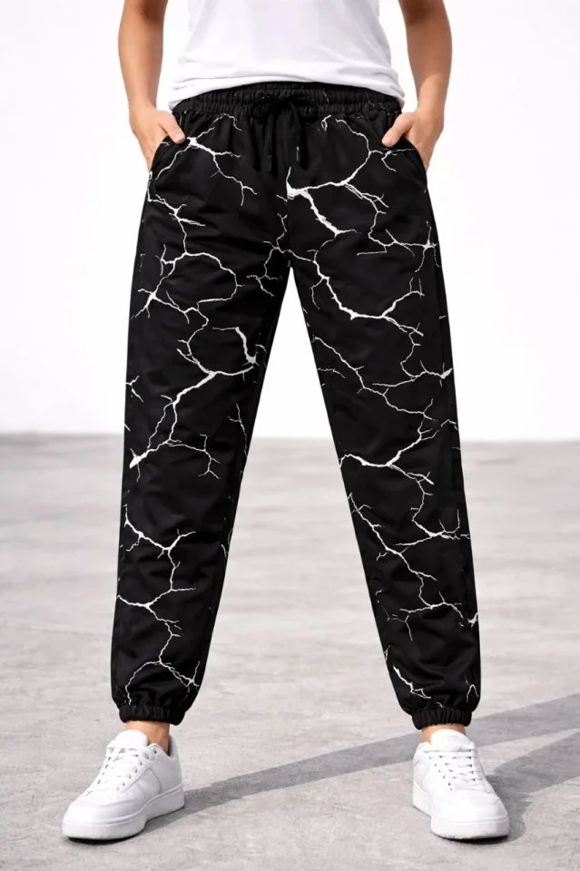 Dijital Baskılı Eşofman Altı Kışlık Üç İplik Şardonlu Kumaş Lastikli Paça, Cepli, Rahat Kalıp – Siyah