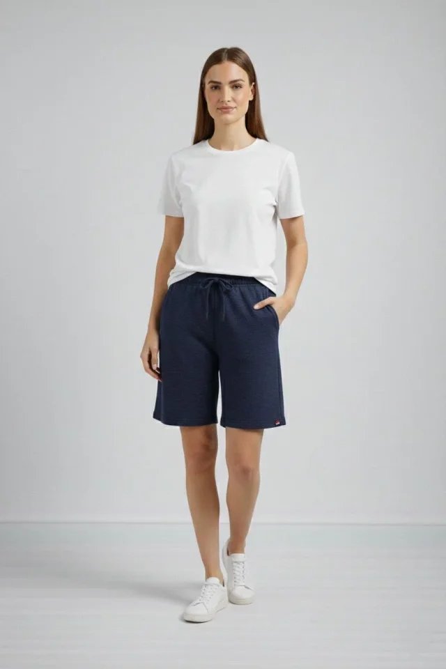 Dokuma Otoban Şort Beli Lastikli Bağcıklı, Cepli, Rahat Kesim Günlük Yazlık Şort – Lacivert