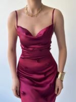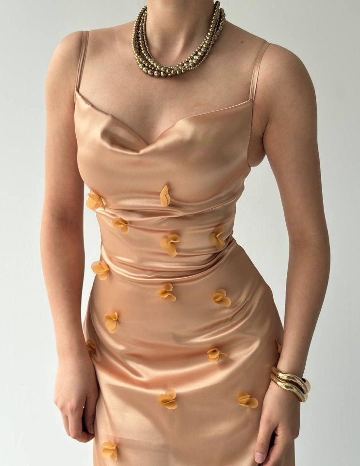 Kadın Kısa Kollu Balıkçı Yaka Arkadan Kelebek Dekolte Detaylı Kısa Atlas Elbise