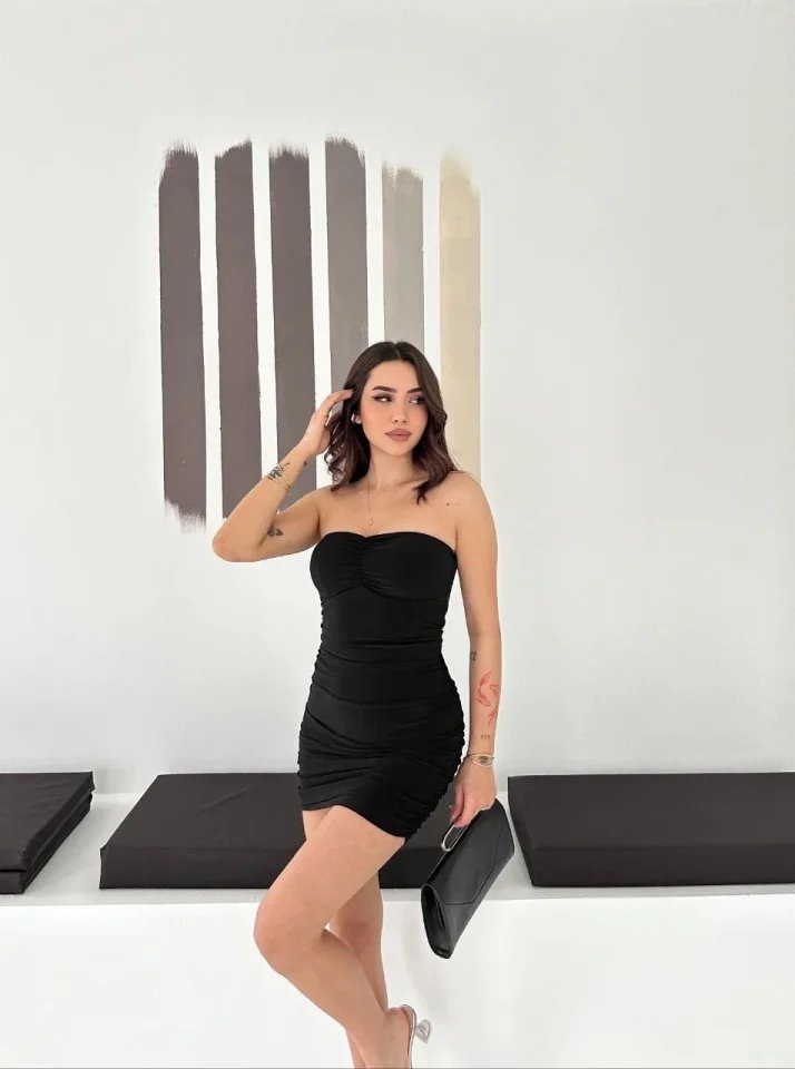 “Drapeli Straplez Mini Elbise Esnek Kumaş Vücuda Oturan Gece Elbisesi” için yorum yapan ilk kişi siz olun Yanıtı iptal et