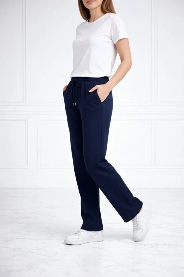 Düz Paça Beli Lastikli İpli Günlük Spor Eşofman Altı Rahat Fit – Lacivert