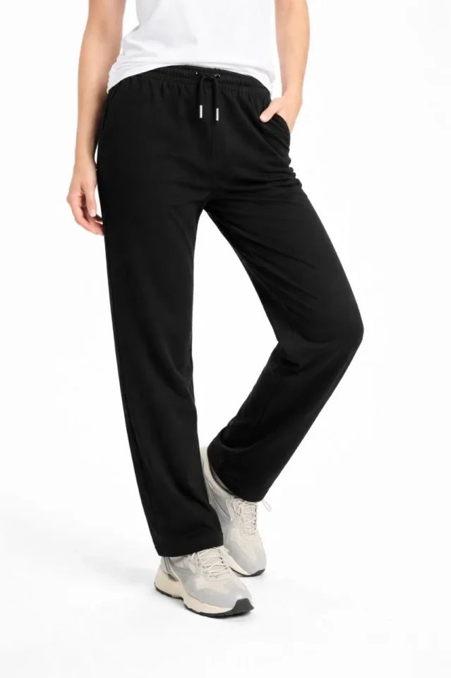 Düz Paça Beli Lastikli İpli Günlük Spor Eşofman Altı Rahat Fit – Siyah
