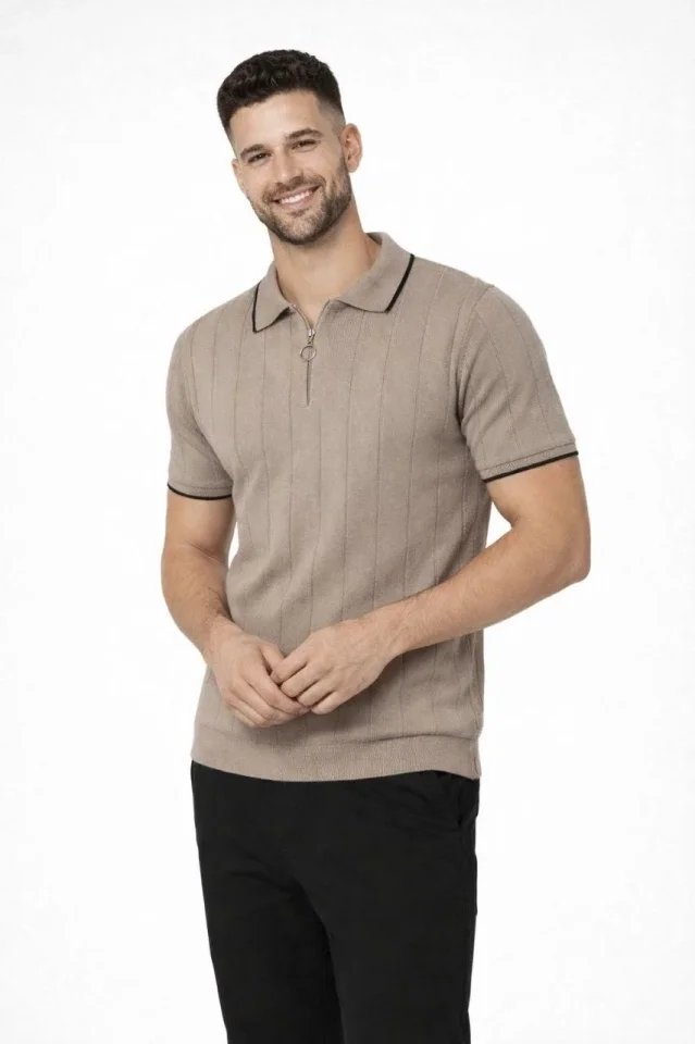 Erkek 3’lü Paket Dokuma Triko Fermuarlı Yakalı Fitilli Kısa Kollu Regular Fit Tişört – Kahverengi, Beyaz, Siyah