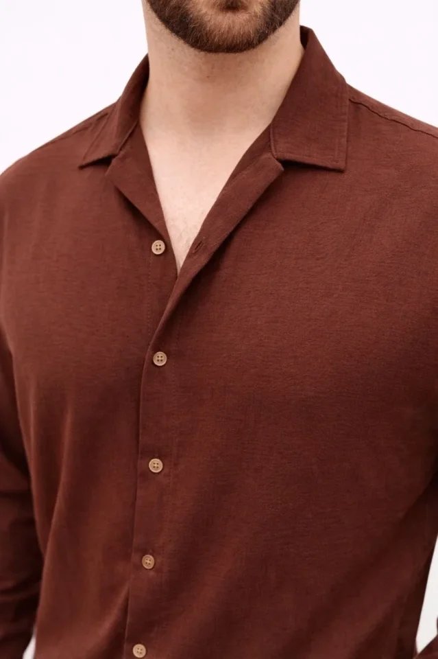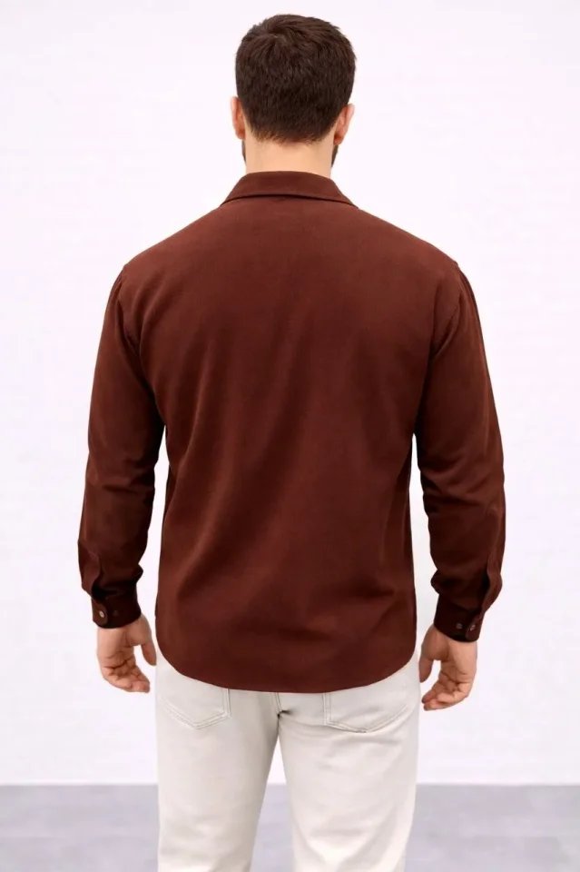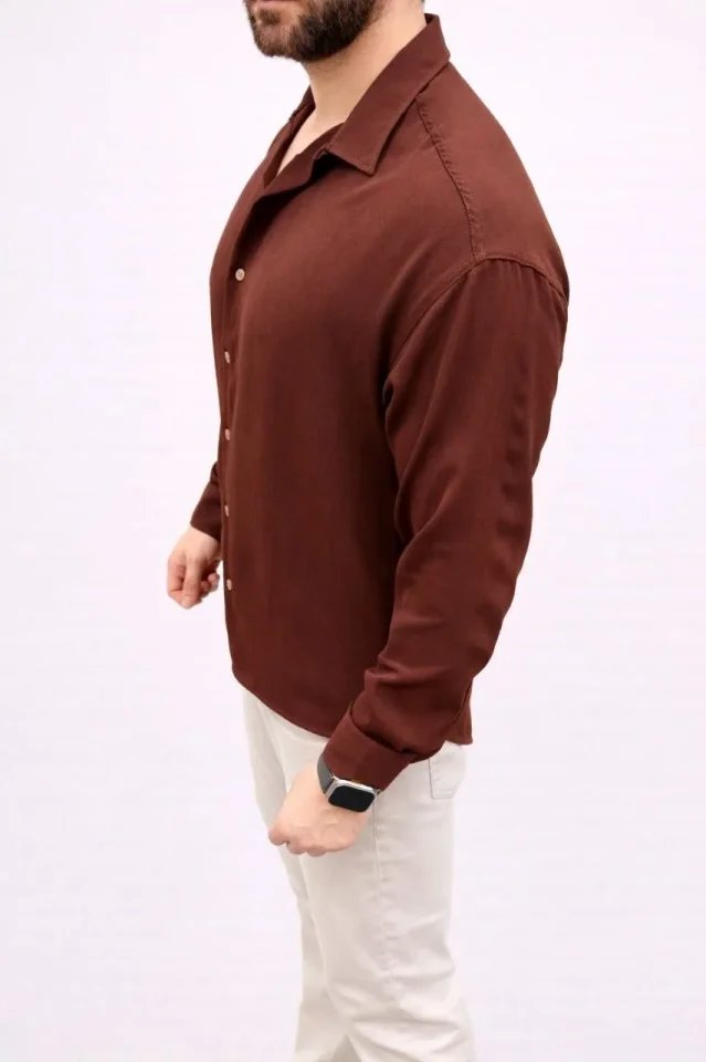 Erkek Aerobin Kumaş Oversize 4 Mevsim Uzun Kollu Rahat Kalıp Gömlek – Kahverengi