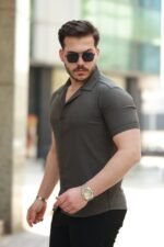 Erkek Apaj Yaka Kısa Kollu Gömlek