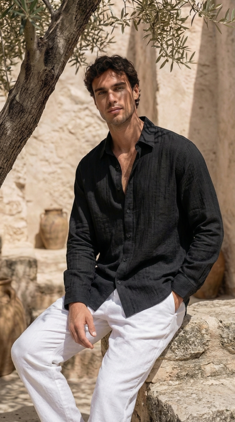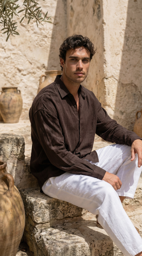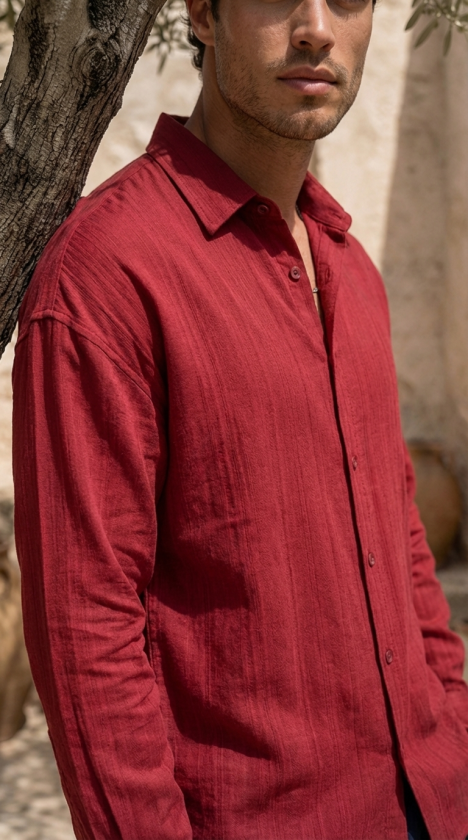 Erkek Armürlü Yarım Oversize Müslin Gömlek