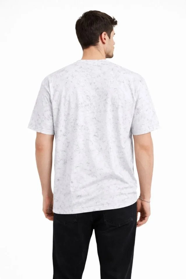 Erkek Asit Yıkama Bisiklet Yaka Kısa Kollu Oversize T-Shirt Tişört – Beyaz