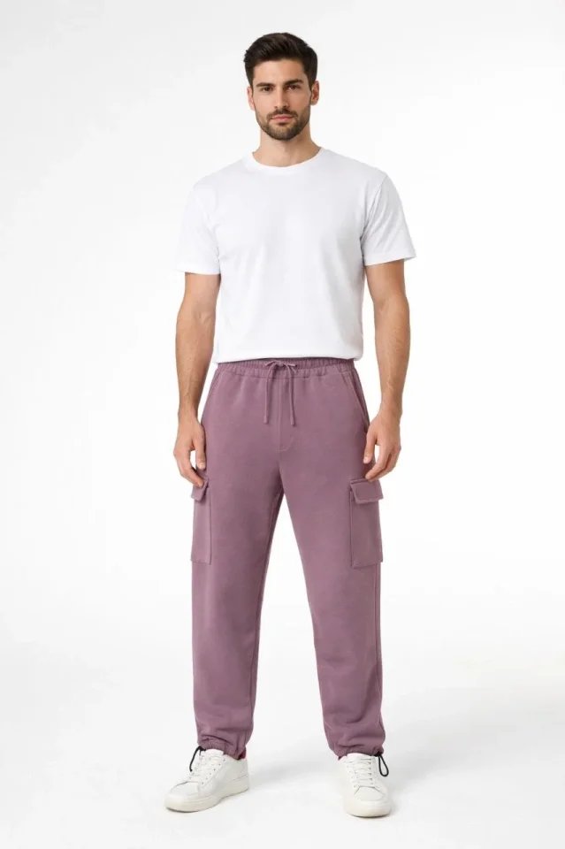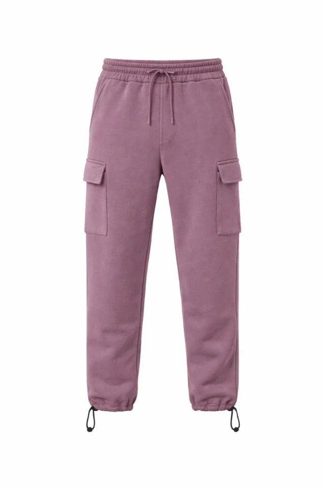 Erkek Baggy Üç İplik Kargo Cepli Eşofman Ayarlanabilir Paça Beli İpli Pantolon – Gül Kurusu